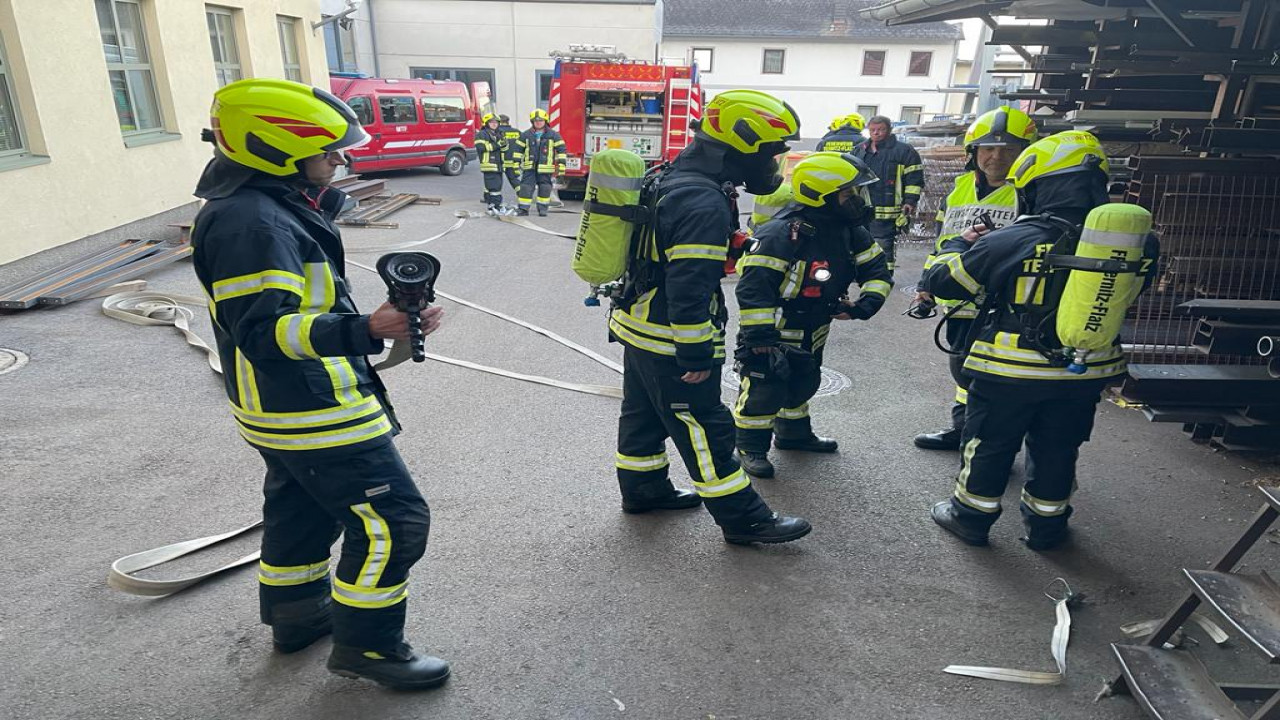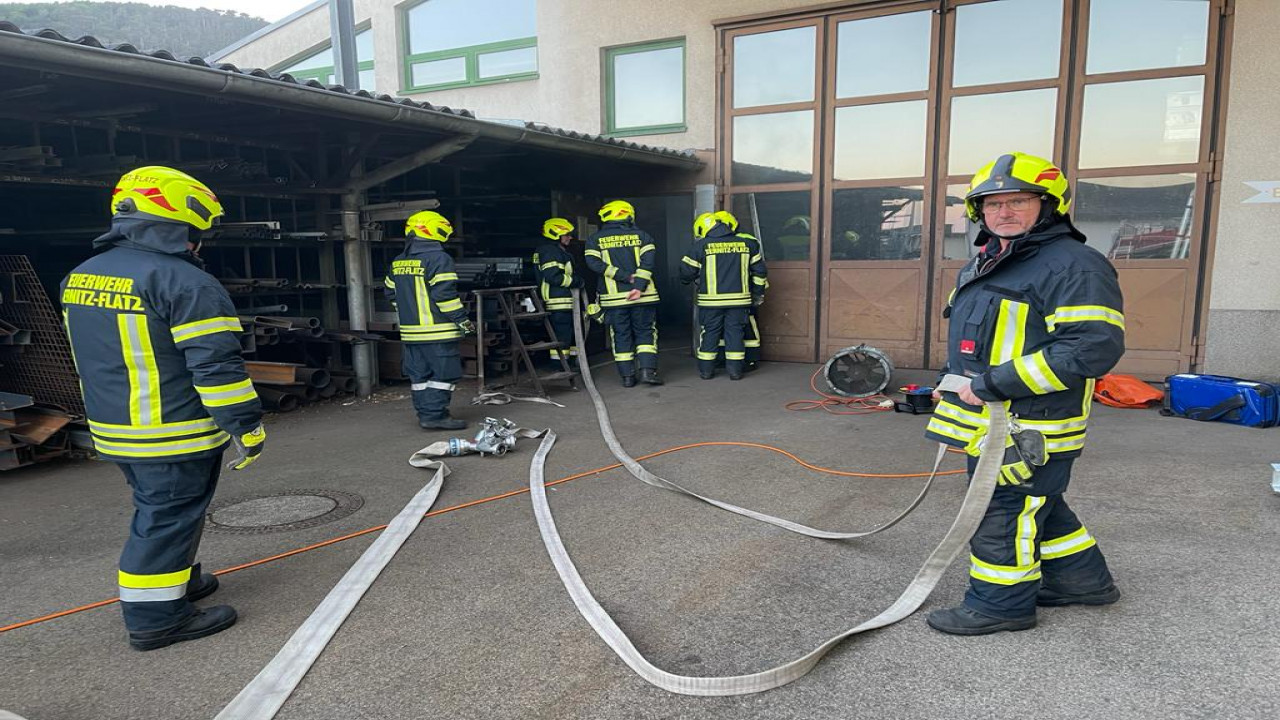 Übungsannahme war ein Brand mit einer vermissten Person in einem Gewerbebetrieb in Flatz.