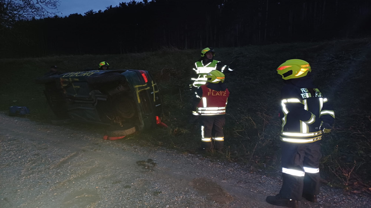 Am 05.10.2024 führte die Freiwillige Feuerwehr Ternitz-Flatz eine technische Übung durch. Das Übungsszenario simulierte einen Verkehrsunfall, bei dem ein Fahrzeug auf der Seite liegen geblieben war. Vor Ort meldeten Passanten dem Einsatzleiter ihre Beobachtungen: Eine Person war mit den Beinen unter dem rechten Hinterrad eingeklemmt. Diese Person war ansprechbar und konnte sich mit dem Ersthelfer verständigen. Der Fahrer, der sich noch im Fahrzeug befand, war anfangs ebenfalls ansprechbar, verlor aber im Laufe der Übung zunehmend das Bewusstsein.