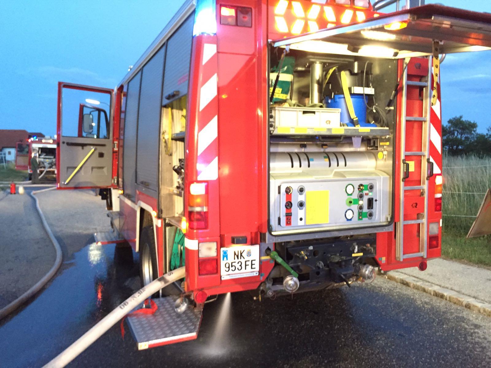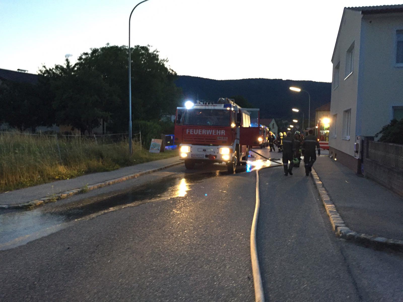 Aufgrund der im Feuerwehrhaus befindliche Mannschaft konnte kurz nach der Alarmierung mit dem RLF ausgerückt werden. Kurz danach rückte auch das TLF vollbesetzt aus.