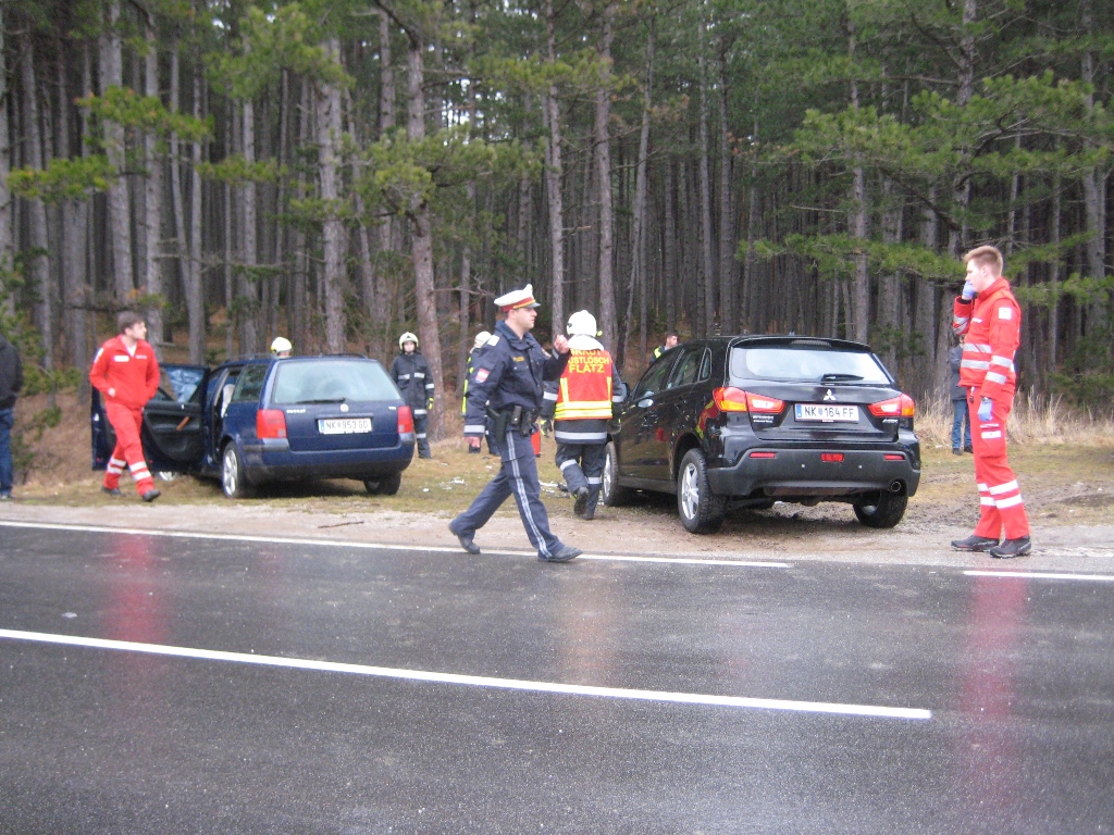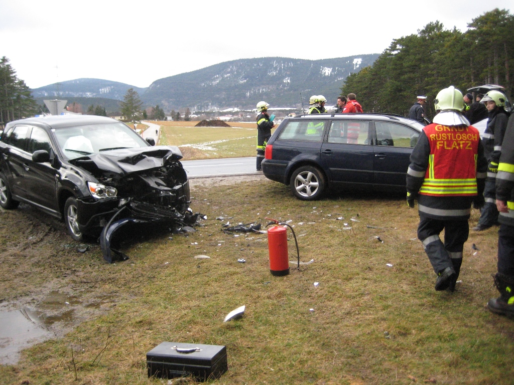 Beim Eintreffen waren bereits Polizei, Feuerwehr Ternitz - Raglitz und Rettung vor Ort. Zwei verletzte Personen wurden bereits erstversorgt. Die Aufgaben der Feuerwehr Ternitz - Flatz waren das Absichern der Einsatzstelle auf Raglitzerseite, die Mitwirkung bei der Verkehrsregelung und die Mithilfe bei der Fahrzeugbergung.