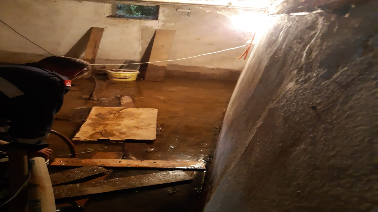 Aufgrund des starken Regens wurde die Feuerwehr zu einem unter Wasser stehenden Keller alamiert.
