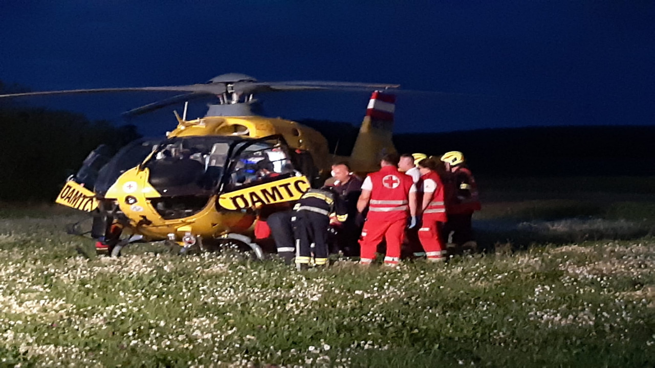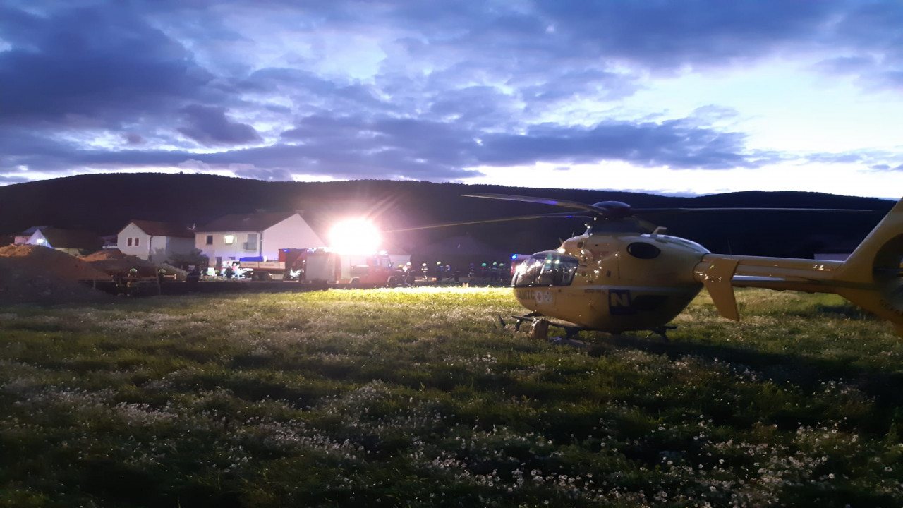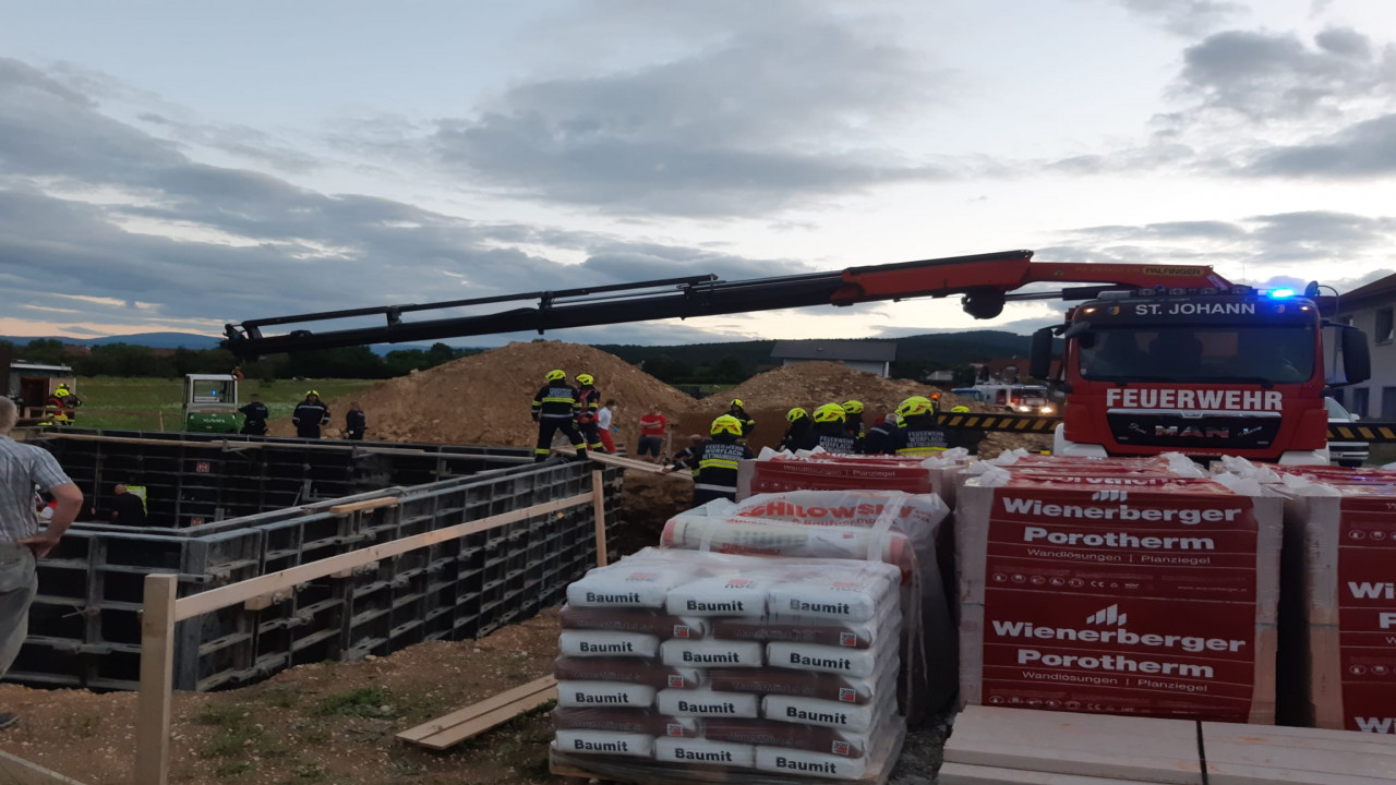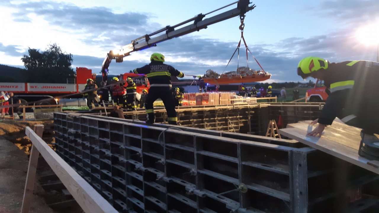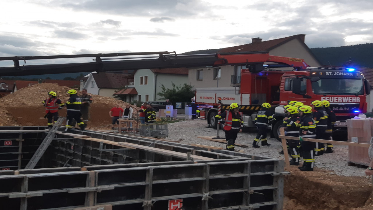 Aufgrund der Dämmmerung musste die Einsatzstelle mit mehreren Lichtflutern ausgeleuchtet werden. Mittels Hubsteiger der Feuerwehr Ternitz-St. Johann wurde die Person in liegender Position, schonend aus der Grube gehoben, und vom nachgeforderten Notarzthubschraubers "Christophorus 3" in ein Krankenhaus geflogen.