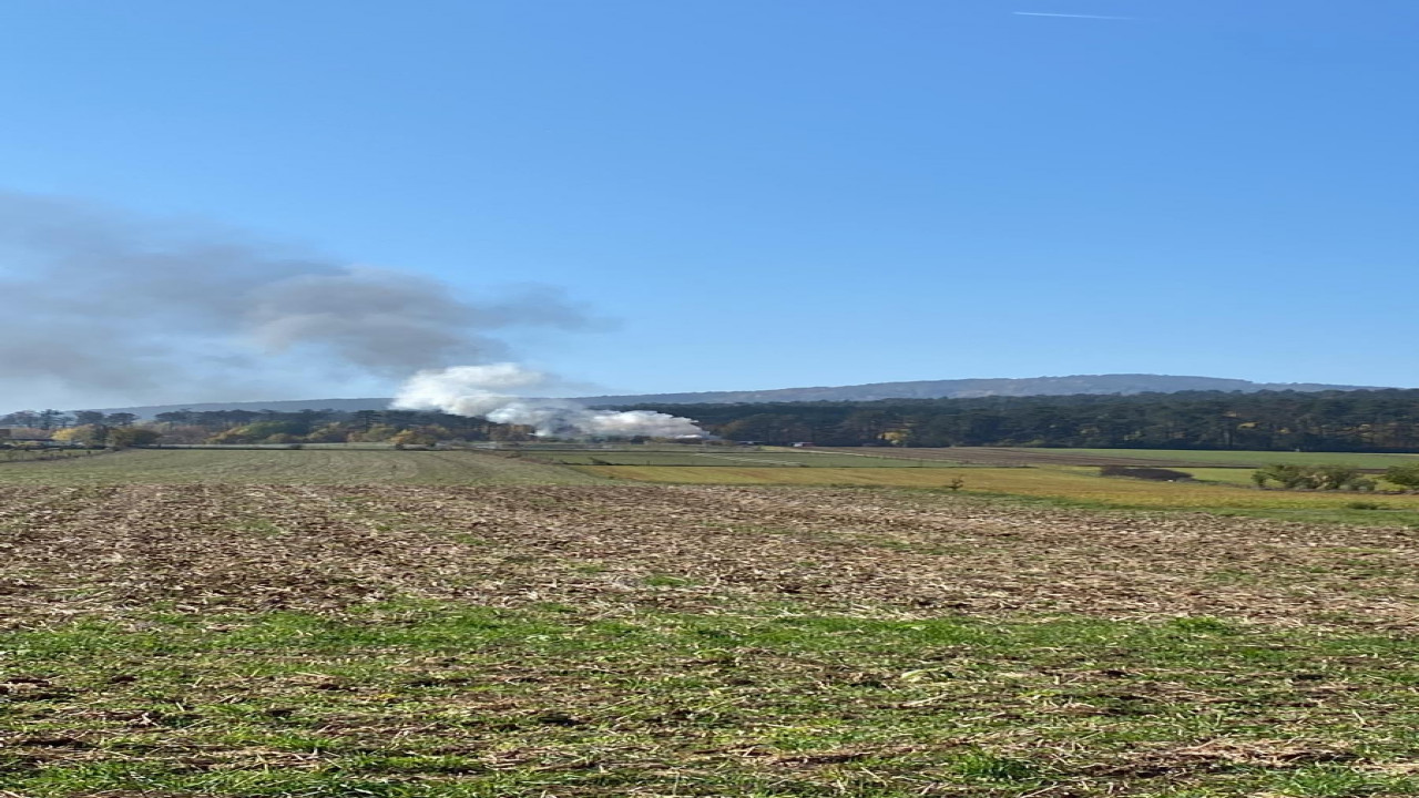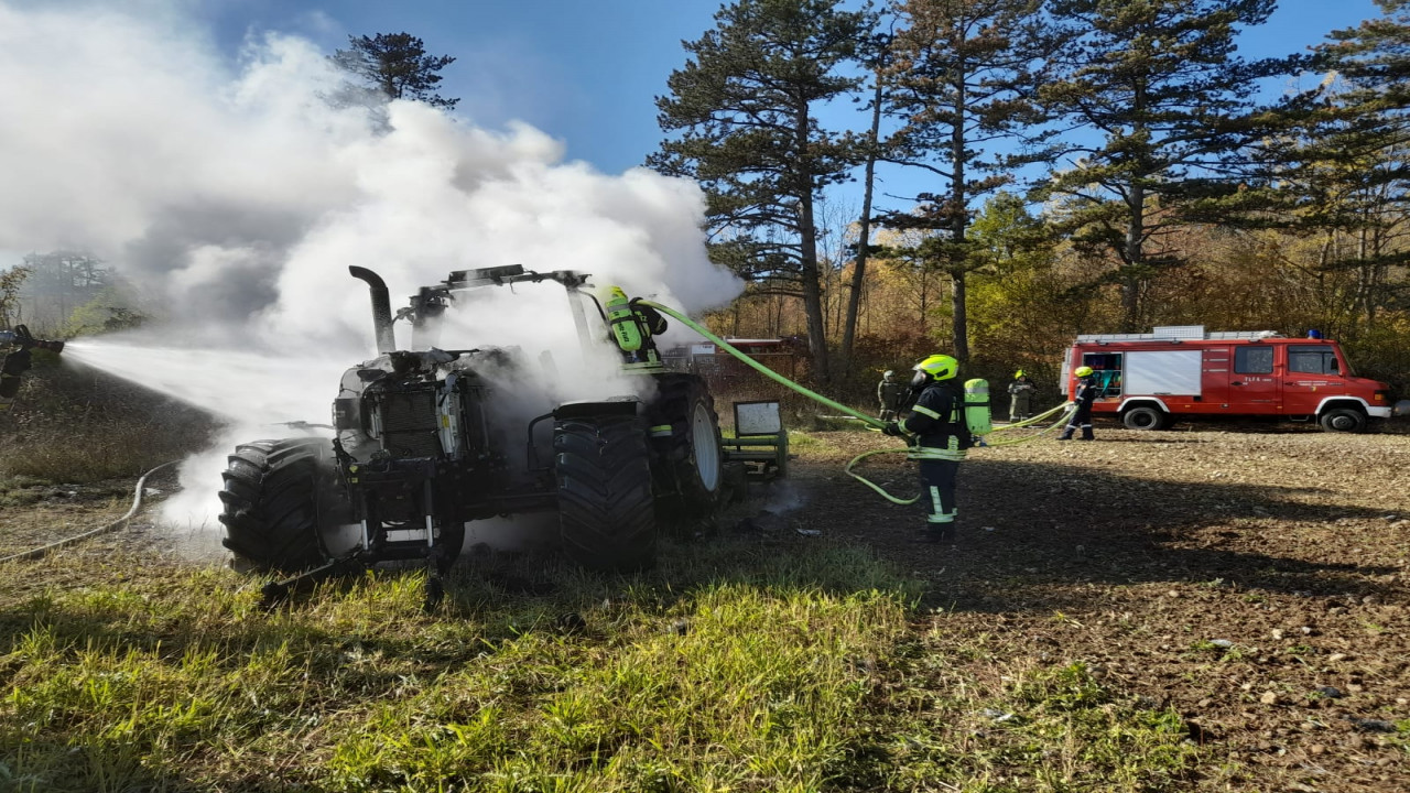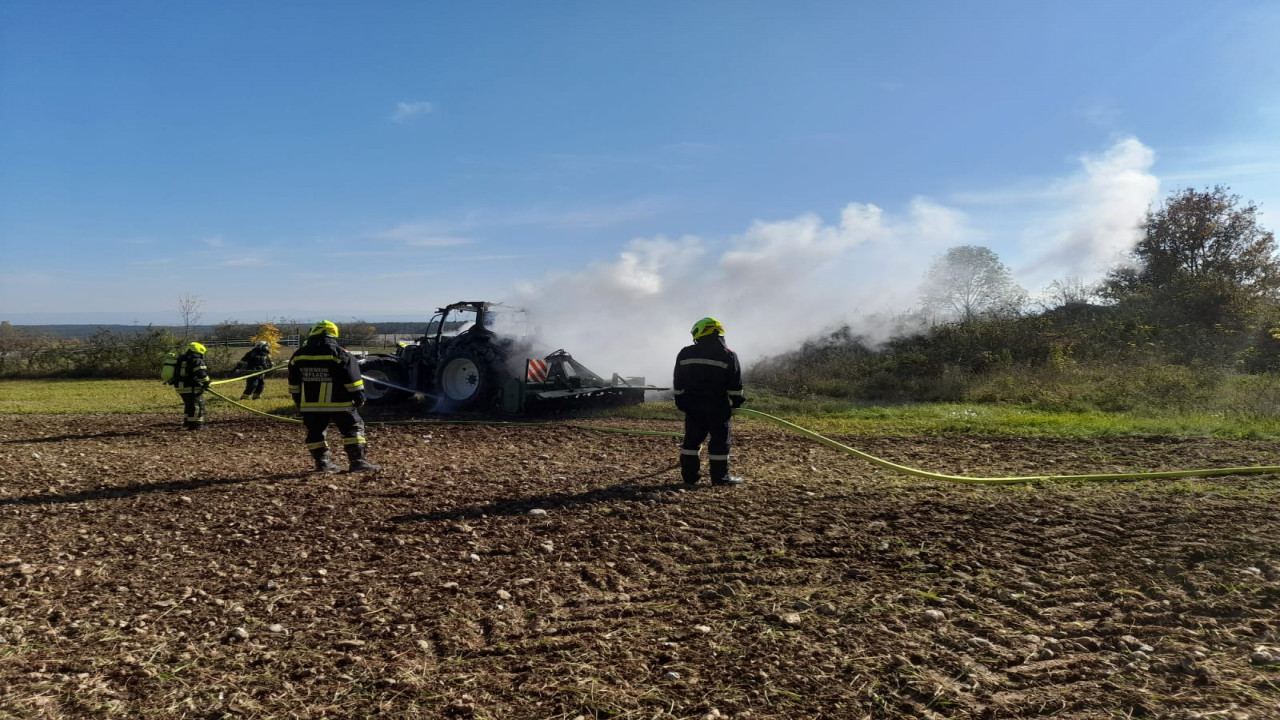 Die Rauchsäule von dem in Vollbrand stehenden Traktor war bereits von weitem sichtbar.